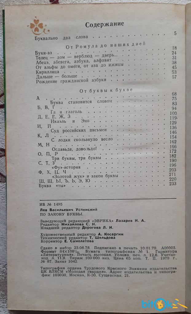 Л.Успенский. По закону буквы (Эврика). 1979р., 240с., 13х20,5см, тираж 100000