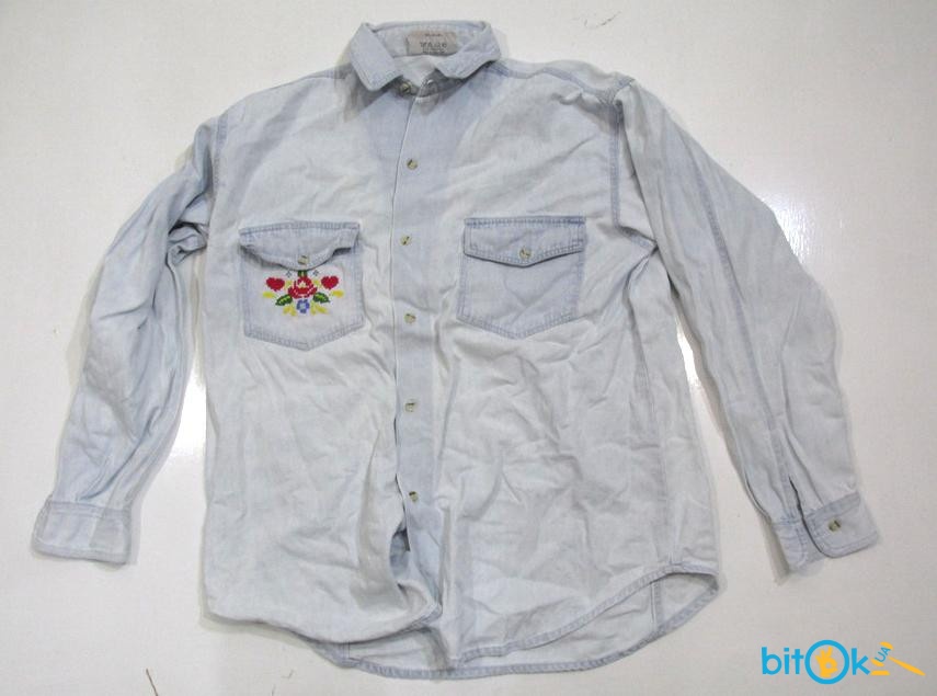 Рубашка джинсова RUSH AUTHENTIC Размер: S; Cостав: 100% cotton; Замеры: воротник - 40 см, плечи – 53 см, рукав – 60 см, ПОГ – 59 см, ширина снизу – 62 см, длина – 74 см. СКИДКА!