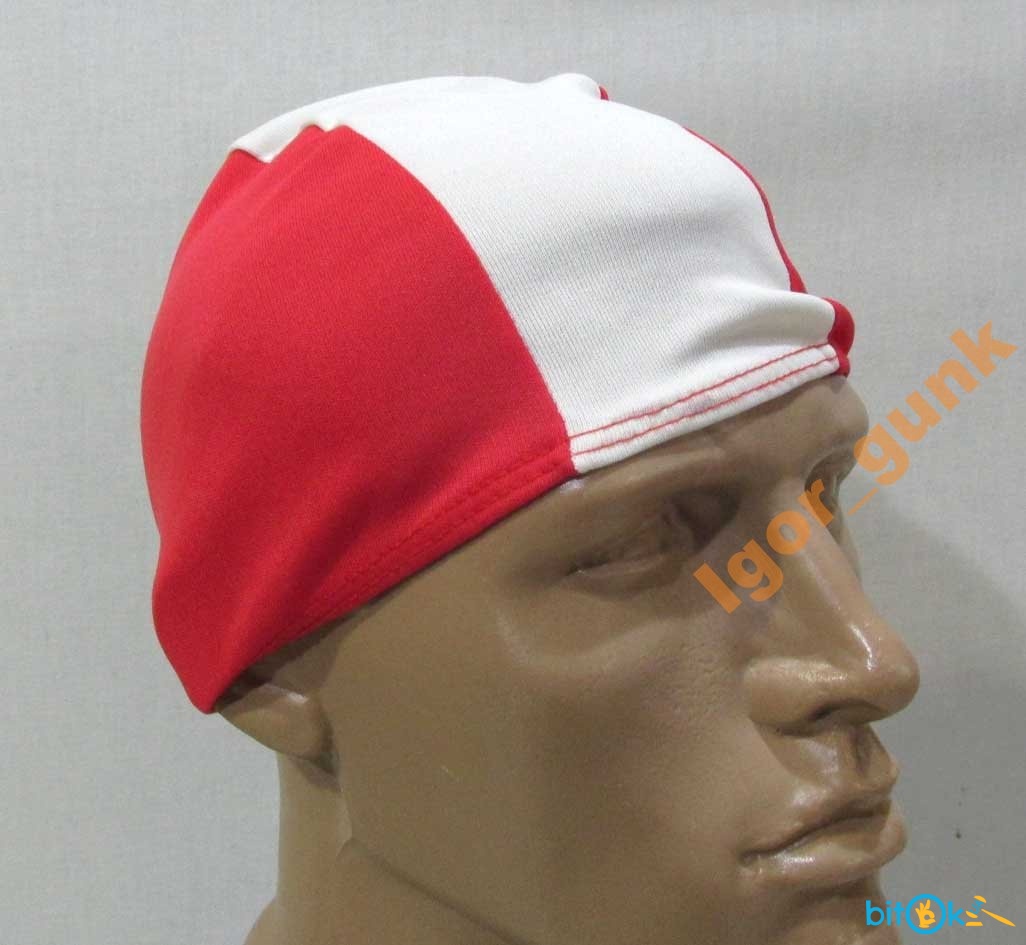 Шапочка спортивная красно белая!