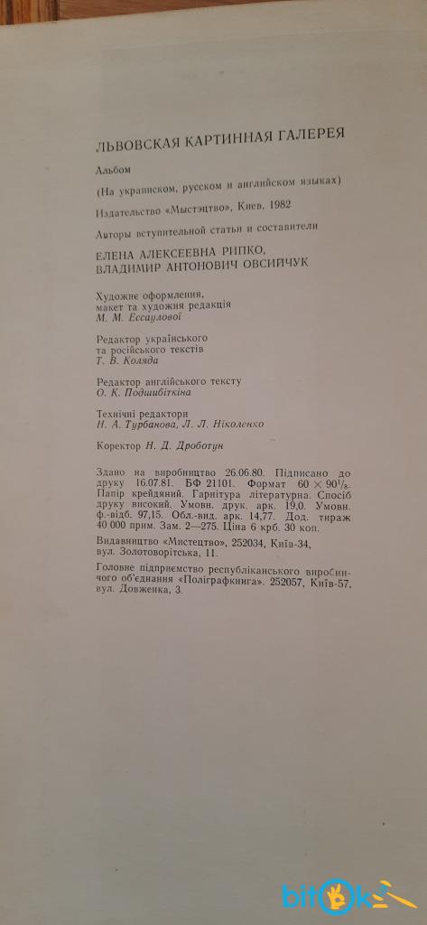 Видавництво "Мистецтво", Київ, 1982.