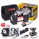 Автомобильный компрессор Voin VL-550При помощи высокопроизводительного автокомпрессора Voin VL-550 вы всегда можете надуть колесо своего автомобиля, мяч, велосипедную шину или даже надувную лодку небольшого размера. Компрессор работает от прикуривателя или может также подключаться к клеммам аккумуляторной батареи автомобиля благодаря переходнику который поставляется в комплекте. Автокомпрессор Voin VL-550 придёт вам на помощь в любую минуту. Накачать спущенную шину для него не проблема даже посреди пустыни, так как ему не нужна электрическая розетка. А также в темное время суток, ведь компрессор оснащен встроенным фонарем. Встроенный дефлятор сможет помочь вам точно установить нужное давление в шинах, путем стравливания лишнего воздуха.ПреимуществаОснащен мощным двигателем, что значительно снижают время накачкиКомпактный, не занимает много места, в комплекте идет сумка для транспортировкиОснащен манометром для отслеживания уровня давленияТехнические характеристикиРекомендован для колес:R13;R14;R15Мощность:150 ВТНапряжение:12 ВМаксимальный ток потребления:15 АМаксимальное давление:10 АтмКоличество поршней:однопоршневойПроизводительность:40 л/мин.Система защиты от перегрева:нетДлина шнура питания:5 мДлина шланга:0,75 мМасса:2,6 кгГарантия 12 месяцев