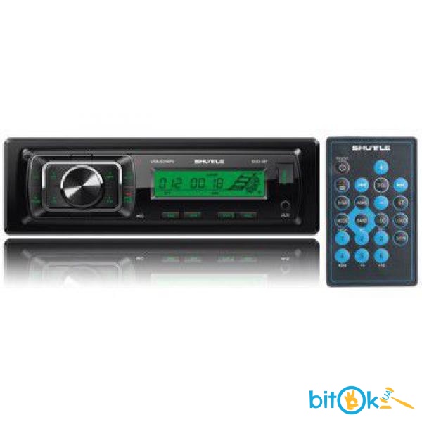 Автомагнитола Shuttle SUD-387 Black/GreenХарактеристикиСъемная передняя панель;Выходная мощность 4 х 45 Вт;Совместимость с форматами MP3, WMA;Интерфейс USB;Cлот для SD-карт памяти;Bluetooth;Высокоскоростной PLL тюнер с цифровой обработкой сигнала;Банк памяти на 18 FM радиостанций;Автоматическое занесение наиболее мощных станций в память;Ручной поиск станций;Режим сканирования занесенных в память станций;Переключаемый режим местного / дальнего приема;Переключатель режимов стерео / моно;Регулировка параметров при помощи вращающегося энкодера;ИК пульт дистанционного управления;Индикация информации ID3 TAG;Режимы повтора / воспроизведения в случайном порядке / сканирования треков;3 предустановленные характеристики эквалайзера (POP / CLASS / ROCK);Режим приглушения звука (MUTE);Тонкомпенсация (LOUD);Линейный RCA стерео аудиовыход;Линейный MiniJack стерео аудиовход;Часы;Стандартный монтажный размер 1 Din;Стандартный ISO разъем;Вариант подсветки кнопок и экрана — зеленый.