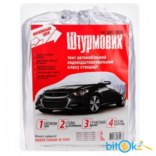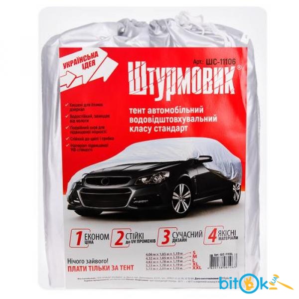 Автомобильный тент Штурмовик – это надежная защита авто от посторонних глаз и негативного внешнего воздействия.Тент Штурмовик ШC-11106 имеет размеры 482х178х119 (L), он выполнен в сером цвете. Данный тент призван защитить покрытие корпуса от коррозии, а салон автомобиля – от перегревания. Данная модель отлично подойдет для небольших легковых автомобилей.Тент произведен из прочной полиэстеровой ткани, он водонепроницаем. Вшитая веревка плотно стягивается и предотвращает сдувание тента.Материал тента невосприимчив к грибку и плесени, послужит надежной защитой от грязи, попадания прямых солнечных лучшей, а также скроет салон от посторонних глаз.