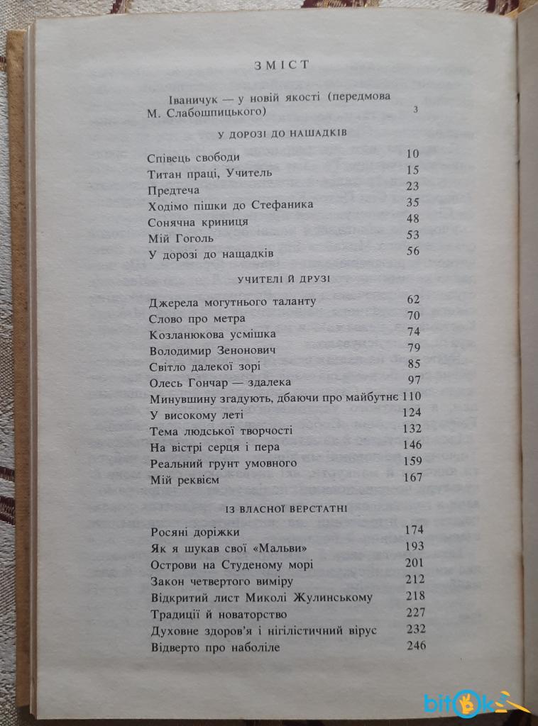 У літературно-критичних статтях письменника оживають образи визначних майстрів слова — Тараса Шевченка, Івана Франка, Михайла Коцюбинського, також він аналізує твори письменників ХХ століття — Андрія Головка, Олеся Гончара, Павла Загребельного, Ніни Бічуї та багатьох інших.