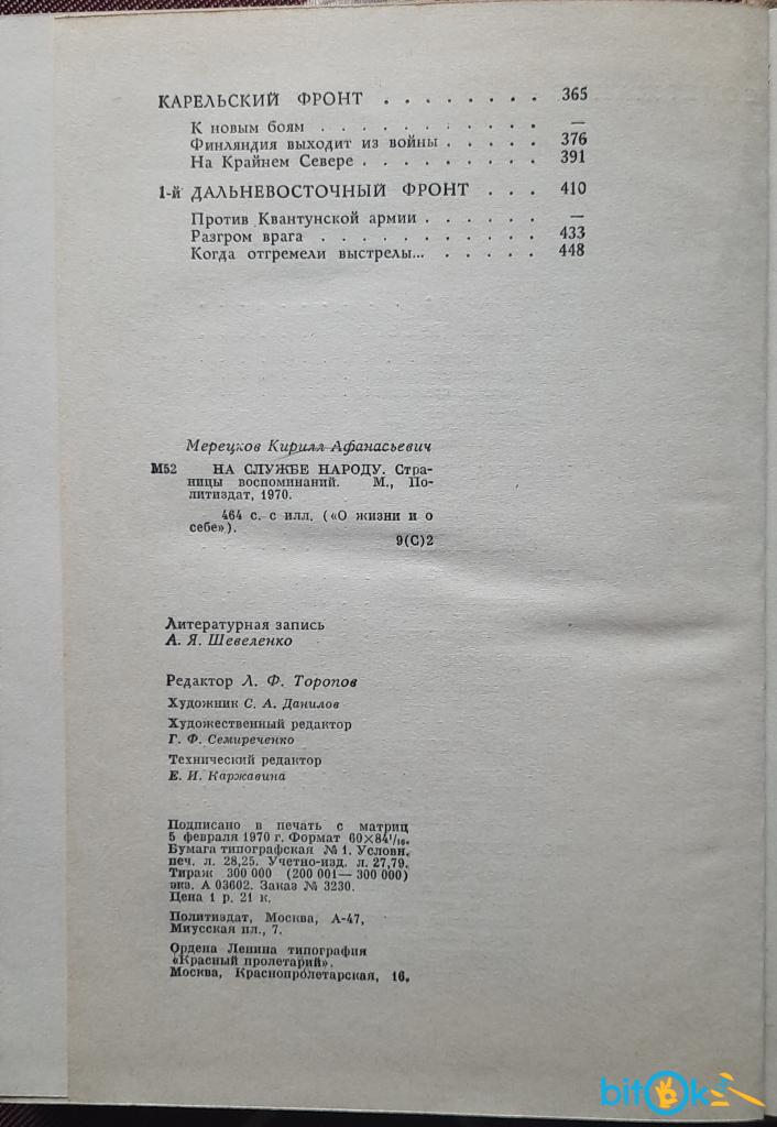 Мерецков К.А. На службе народу. — М.: Политиздат, 1970. С иллюстрациями