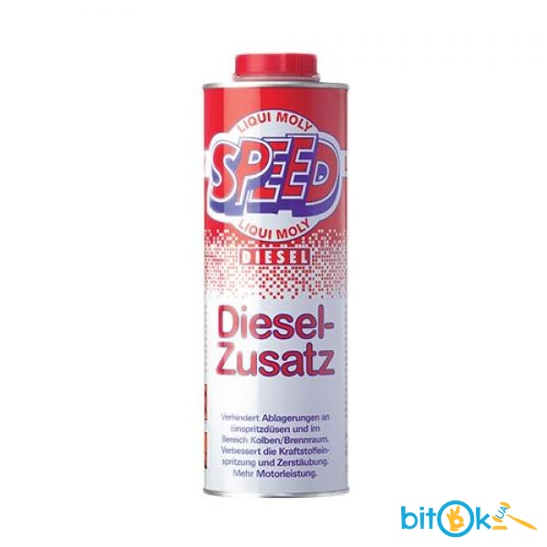 Комплексная присадка в дизельное топливо. Присадка представляет собой комбинацию мягких очищающих, диспергирующих и защитных веществ, созданную для передовых дизельных двигателей и удовлетворяющую всем условиям, предъявляемым к ним. Поднимает цетановое число, мягко очищает топливную систему и защищает от коррозии.Область примененияLiqui Moly Speed Diesel Zusatz добавляется во все дизельные двигатели легковых и грузовых автомобилей, тракторов, строительных машин и стационарных двигателей. Подходит для длительной консервации двигателя в экстремальных климатических условиях.Инструкция1 л присадки рассчитан на 400 л дизельного топлива, или 1 мерный колпачок (25 мл) на 10 л топлива.