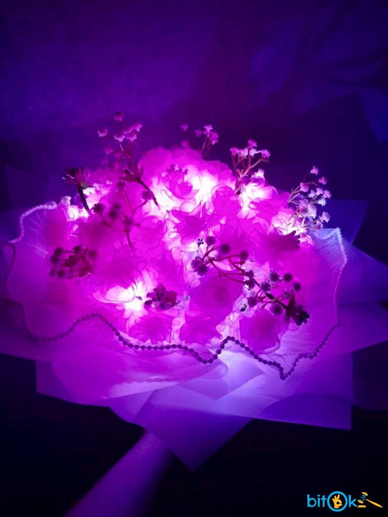 Композиція прикрашена декоративними гілочками та має підсвітку, що створює красивий ефект у темряві.