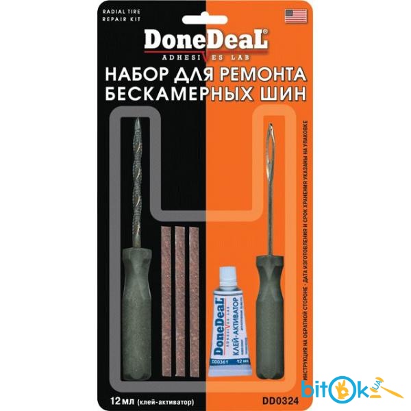Обеспечивает самовулканизацию и надежную герметизацию поврежденного участка. Позволяет выполнить ремонт, не снимая колесо. В комплекты могут входить: инструменты с витым наконечником и игольчатым отверстием, клей-активатор (для сырой резины), полоски сырой резины, резак.