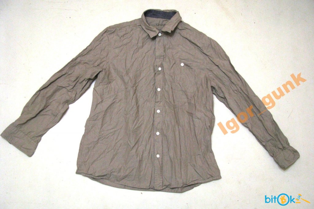 Рубашка GEORGE, Размер: L Состав: 100% cotton Замеры: воротник - 42 см, плечи - 44 см, рукав - 60 см, ПОГ - 52 см, ширина снизу - 56 см, длина - 69 см Как новая! ПОСТОЯННЫМ ПОКУПАТЕЛЯМ АКЦИИ И СКИДКИ! Информация о замерах –