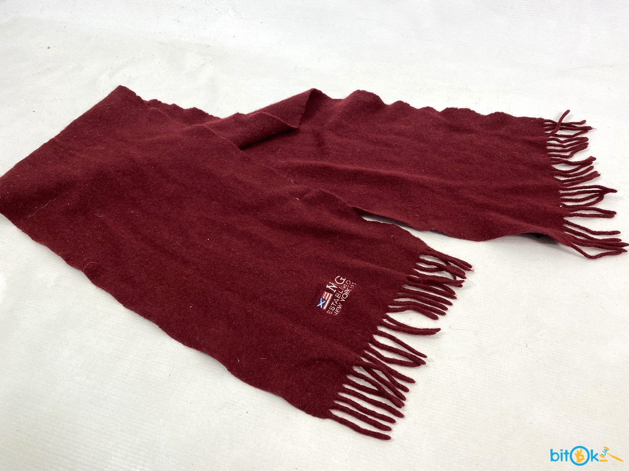 Качественный, фирменный бордовій шерстяной шарф