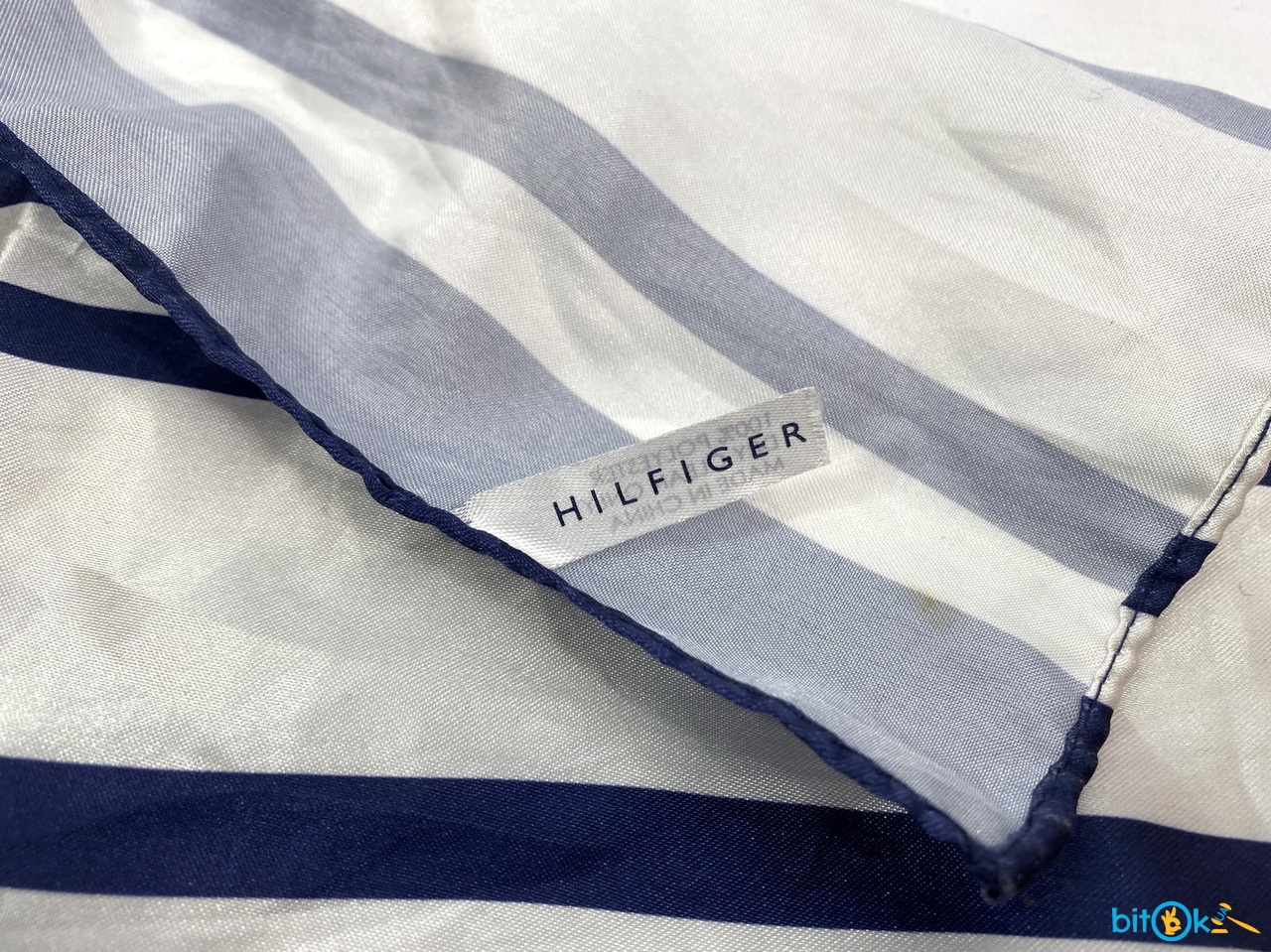 Шарф полосатый белый с синим фирменный Hilfiger, polyester, Отл сост
