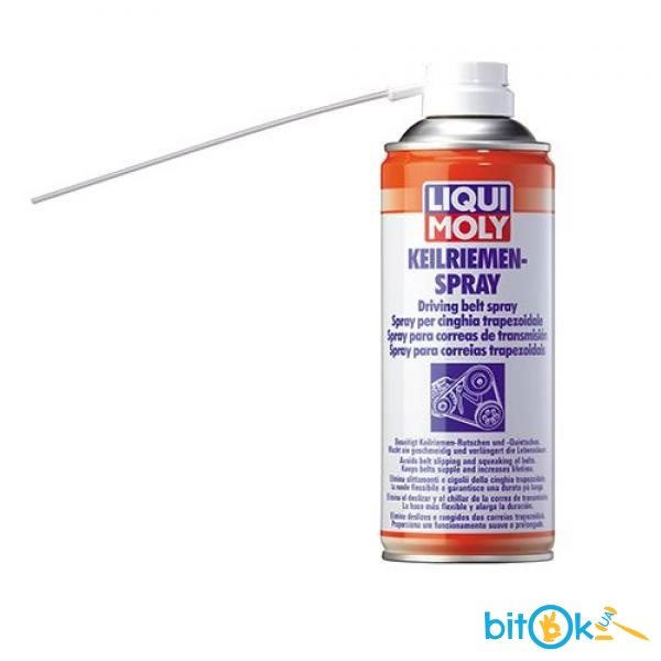 Спрей для ремней. Предотвращает и устраняет скрип, и проскальзывание клинового (поликлинового) ремня. Придает им эластичность и увеличивает срок службы. Защищает ремни и шкивы от износа. Обеспечивает уход и надёжную защиту. Область примененияДля всех типов ремней из кожи, резины, волосяных ремней и т. д. Нанести средство на боковые поверхности ремня и дать средству подействовать минимум 10 минут. ! Не применять для ремней ГРМ!