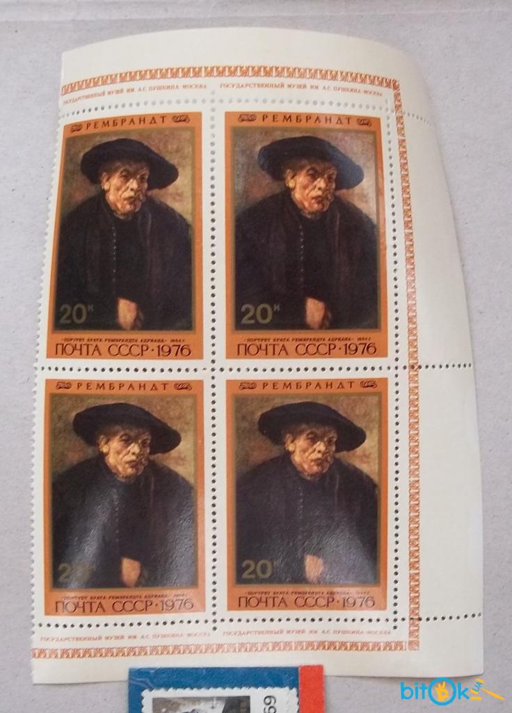 СССР 1976 г - квартблок Портрет брата Рембрандта Андриана