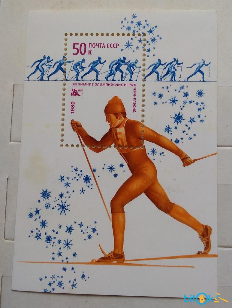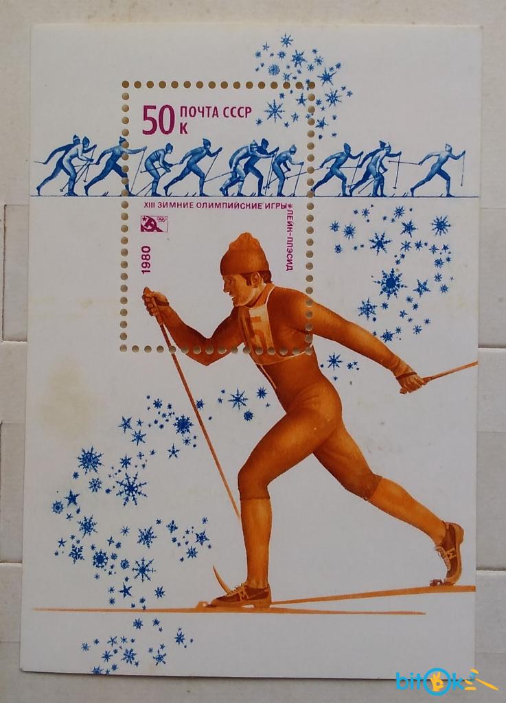 СССР 1980 г - XIII зимние Олимпийские игры в Лейк-Плэсиде. Лыжные гонки. Почтовый блок