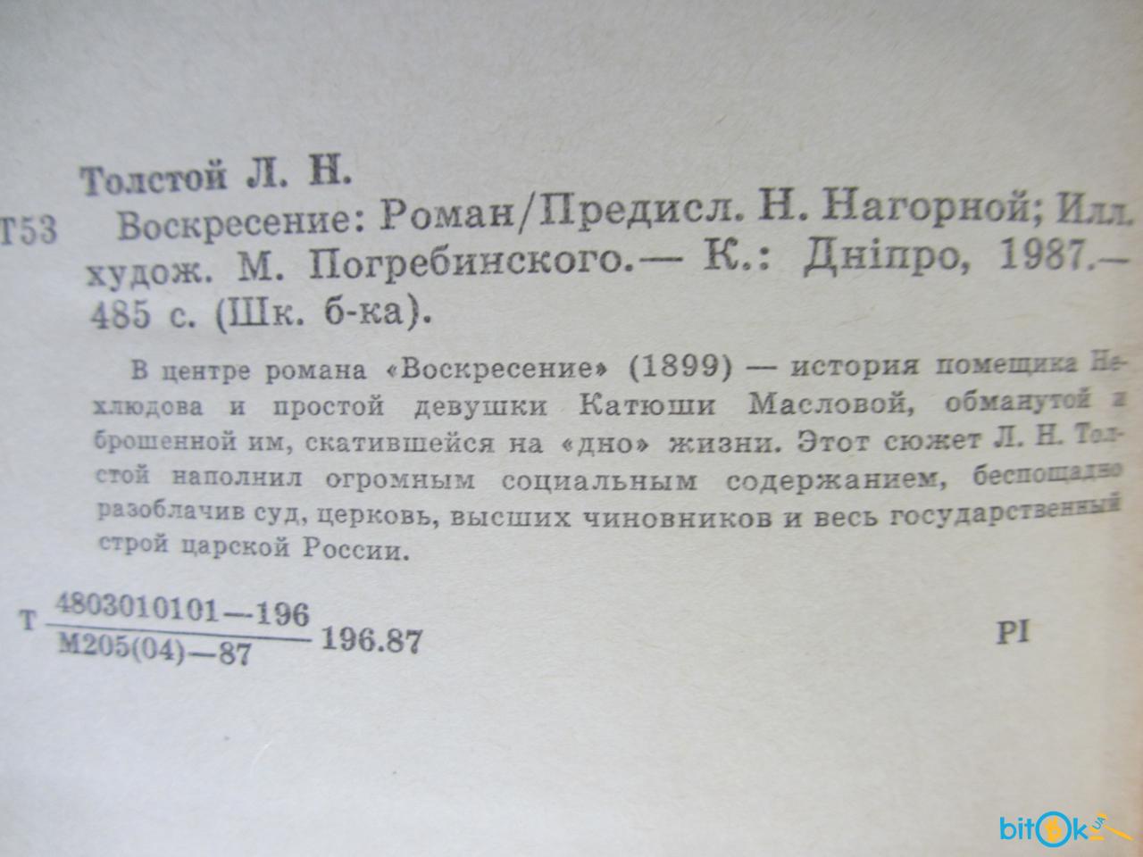 Толстой Л. Н. Воскресение, Школьная библиотека - Киев: Днiпро, 1987. - 485 стр.