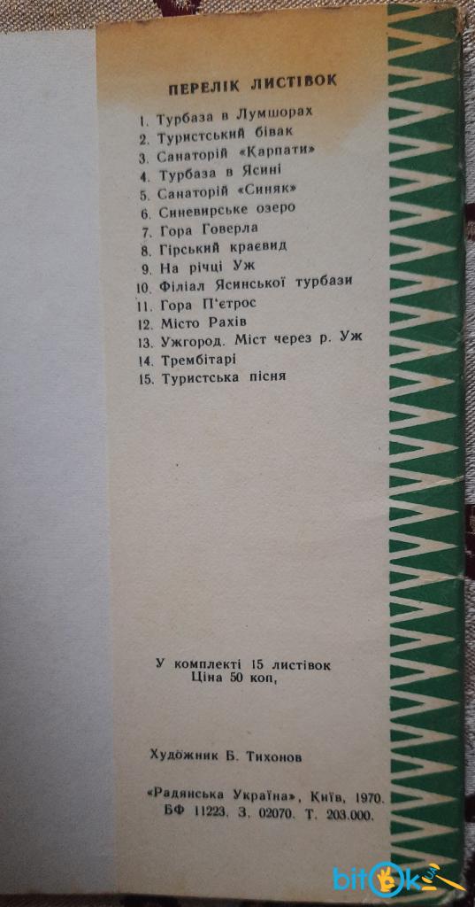 Туристичними стежками Закарпаття набір листівок, 15 шт, 1970