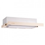 Телскопическая вытяжка; механический тип управления; режимы работы вытяжки: отвод/циркуляция; количество двигателей: 1; количество скоростей: 3; потребляемая мощность, Вт: 120; Производительность: 400 куб. м/ч.; тип освещения: лампа накаливания; количество ламп: 2; мощность каждой лампы, Вт: 40; диаметр воздухоотвода, мм: 120; ширина для встраивания, см: 50; размеры 56 х 23.3 х 36.3 см; цвет: Белый / бежевый